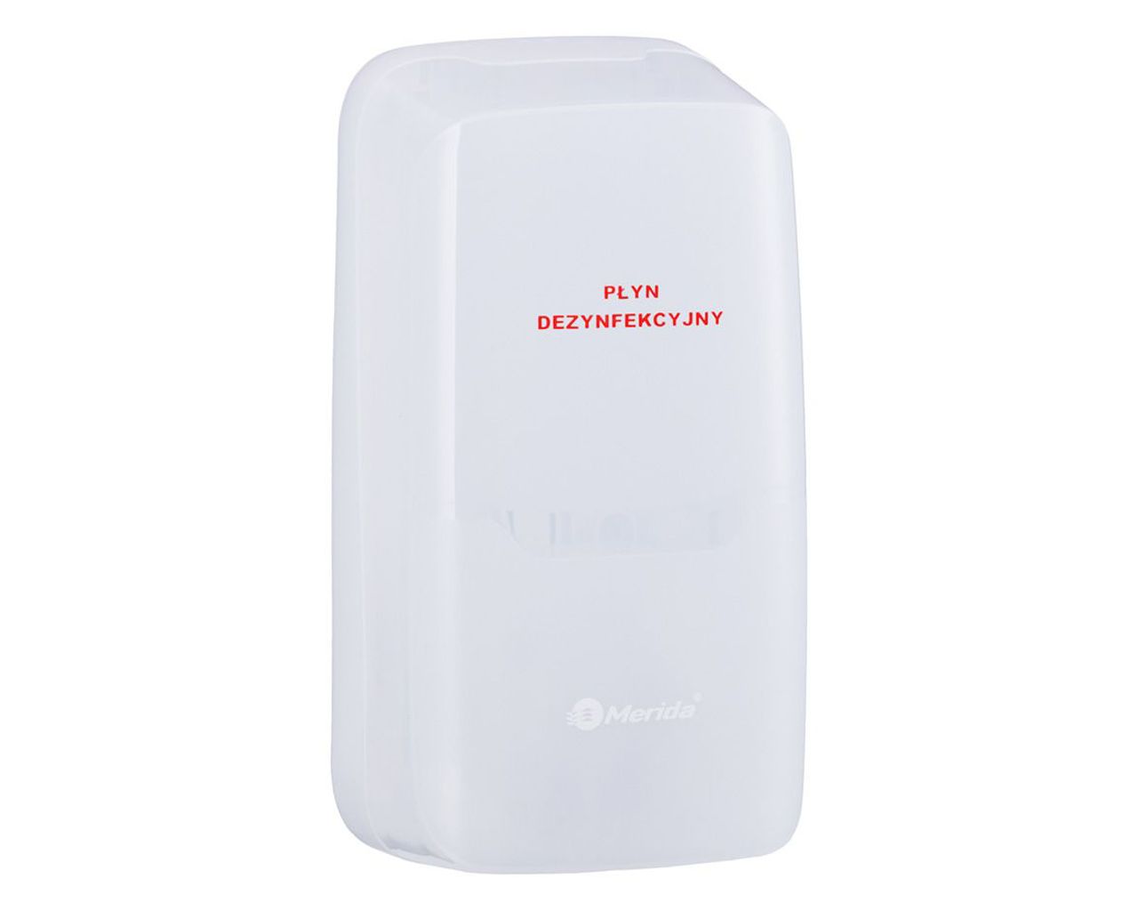 Bezdotykowy automatyczny dozownik płynu dezynfekcyjnego w sprayu MERIDA HARMONY na jednorazowe wkłady 800 ml z płynem dezynfekcyjnym MERIDA POLANA DDR+tworzywobiały transparentny