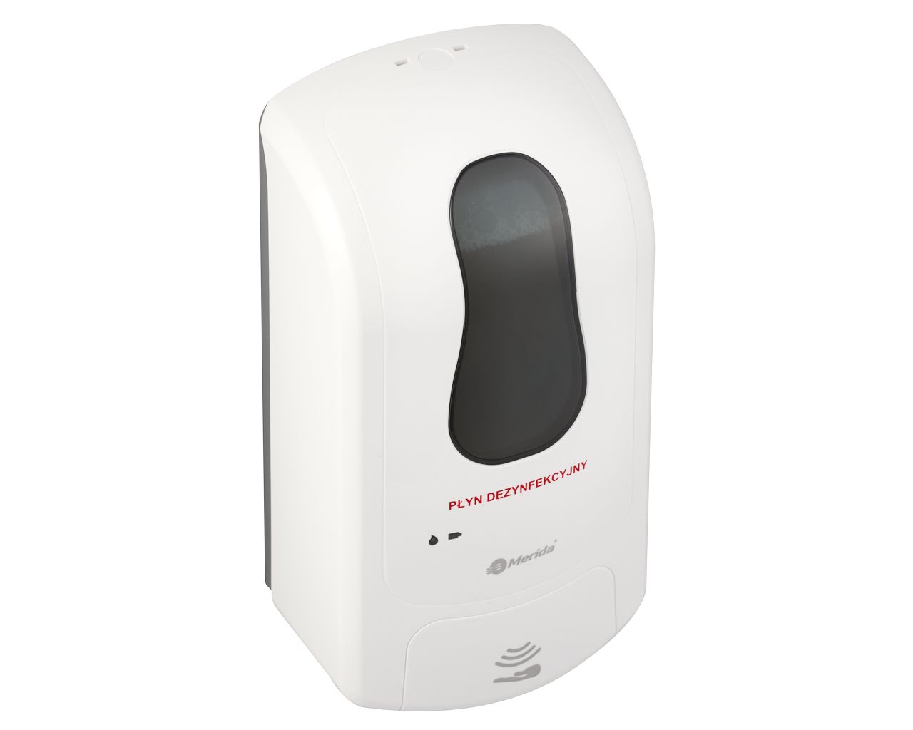 Bezdotykowy automatyczny dozownik płynu dezynfekcyjnego w sprayu MERIDA ONEna jednorazowe wkłady 1000 ml, tworzywo ABSbiały