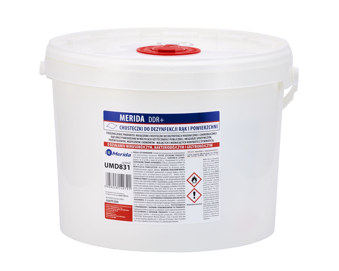 Chusteczki nasączone do chirurgicznej i higienicznej dezynfekcji rąk i powierzchni MERIDA POLANA DDR+wiadro 10 l, rolka 122,36 m322 listki