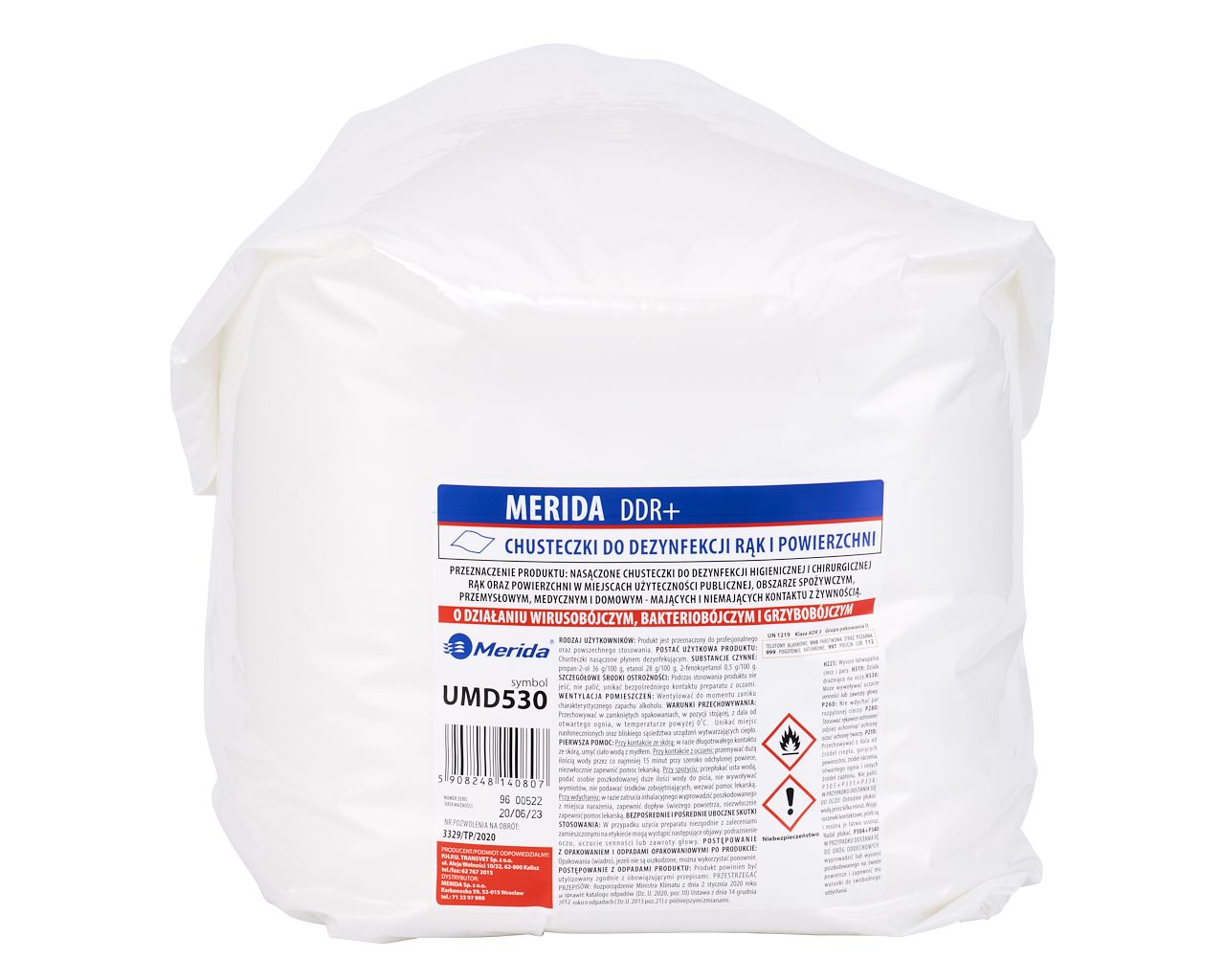 – chusteczki Merida POLANA DDR+ to produkt zawierający mieszaninę trzech substancji czynnych (etanol, izopropanol i fenoksyetanol), skutecznych w walce z grzybami, bakteriami i wirusami (pozwolenie na obrót produktem biobójczym nr 3329/TP/2020)