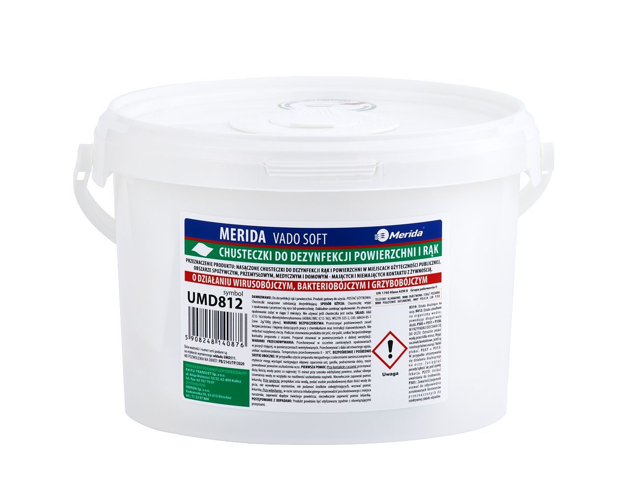 Chusteczki nasączone do dezynfekcji rąk i powierzchni MERIDA VADO SOFTbezalkoholowe, wiadro 3l, rolka 44,5 m445 listków