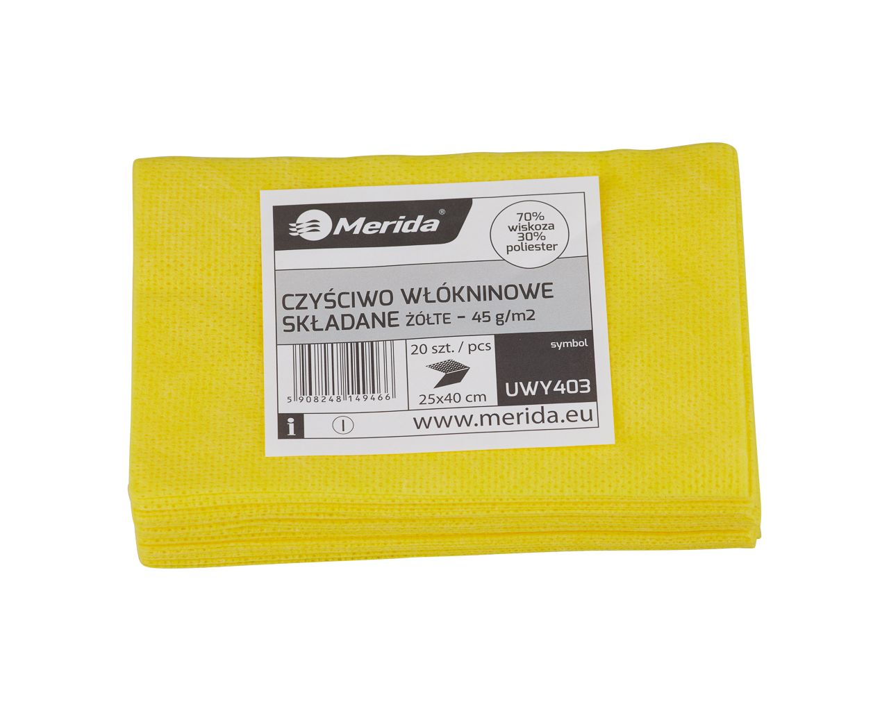 Czyściwo włókninowe w listkachŻÓŁTE, 25 x 40 cmpaczka 20 szt.