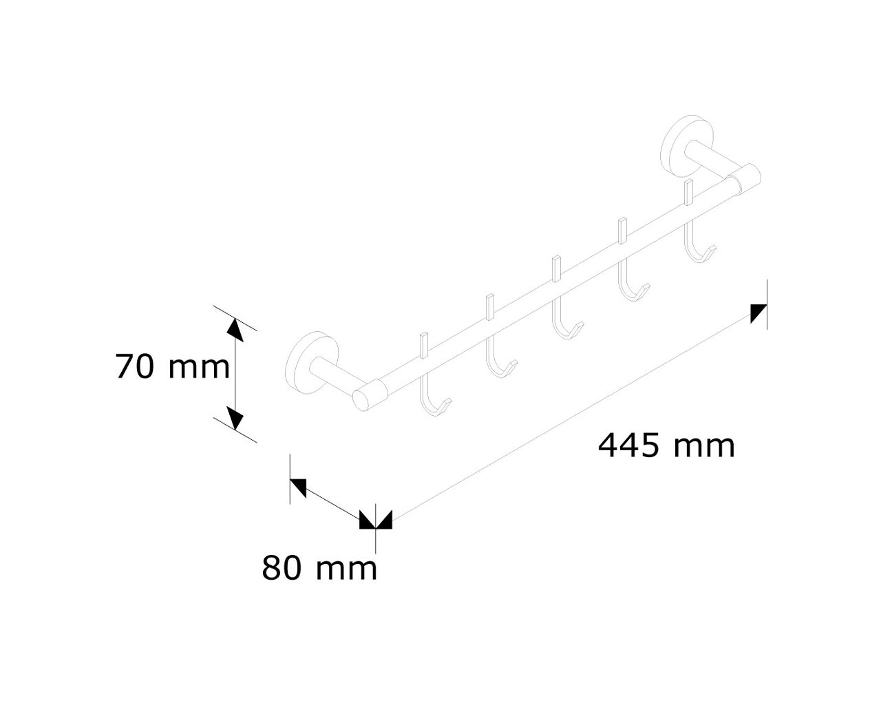 Drążek L400 mm z pięcioma haczykami