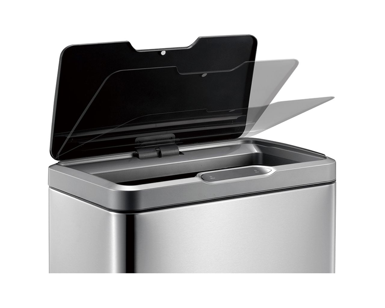 – klapa kosza otwierana bezdotykowo, czujnikiem zbliżeniowym, zamykana automatycznie, czas do zamknięcia pokazany na wskaźniku elektronicznym