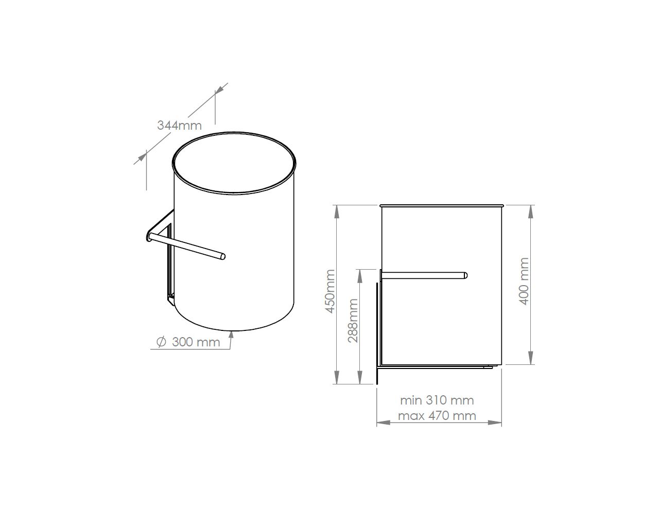 – uchwyt kosza do montażu ściennego pod blatem