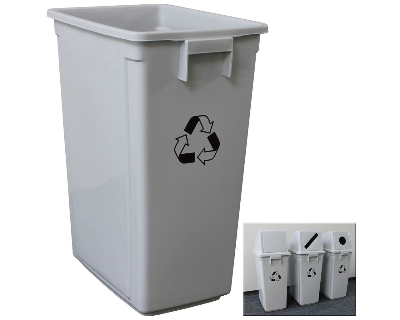 Kosz z tworzywa do segregacji odpadów o pojemności 60 litrów. Wykonany z solidnego, wytrzymałego tworzywa. Istnieje możliwość wyposażenia kosza w jedną z trzech rodzajów pokryw. Pokrywy sprzedawane są osobno.