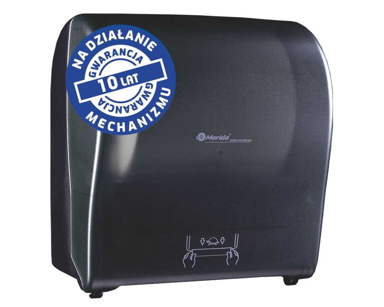 Mechaniczny podajnik ręczników papierowych w rolach MERIDA SOLID CUT AUTOMATIC MAXItworzywo ABS, front transparentny ciemny – mattył pełen ciemny – mat