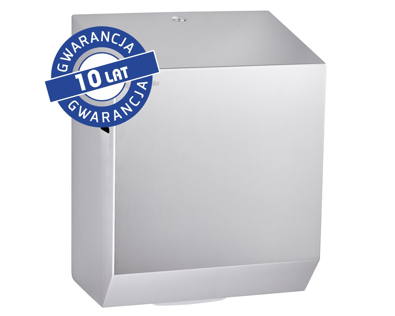 Mechaniczny podajnik ręczników papierowych zapewnia higieniczne użytkowanie, dotykany jest tylko pobierany ręcznik. Pobranie ręcznika uruchamia mechanizm odcinający listek o długości 25,5 cm. Urządzenie charakteryzuje się cichą i delikatną pracą mechanizmu odcinającego. W sytuacji awaryjnej ręcznik można wysunąć przez naciśnięcie dźwigni PUSH, znajdującej się w dolnej części podajnika. Uchwyt rolki wyposażony w system ułatwiający zakładanie ręcznika. Podajnik posiada łatwy dostęp do mechanizmu tnącego umożliwiający bezproblemowe czyszczenie oraz konserwację urządzenia. Podajnik ręczników zabezpieczony jest trwałym stalowym zamkiem bębenkowym. Zamek zlicowany z powierzchnią urządzenia. Łączenia boków podajnika ręczników są spawane i szlifowane. Urządzenie posiada niewidoczne zawiasy, obudowa i tylna ścianka wykonana ze stali nierdzewnej polerowanej. Zamykany na kluczyk.