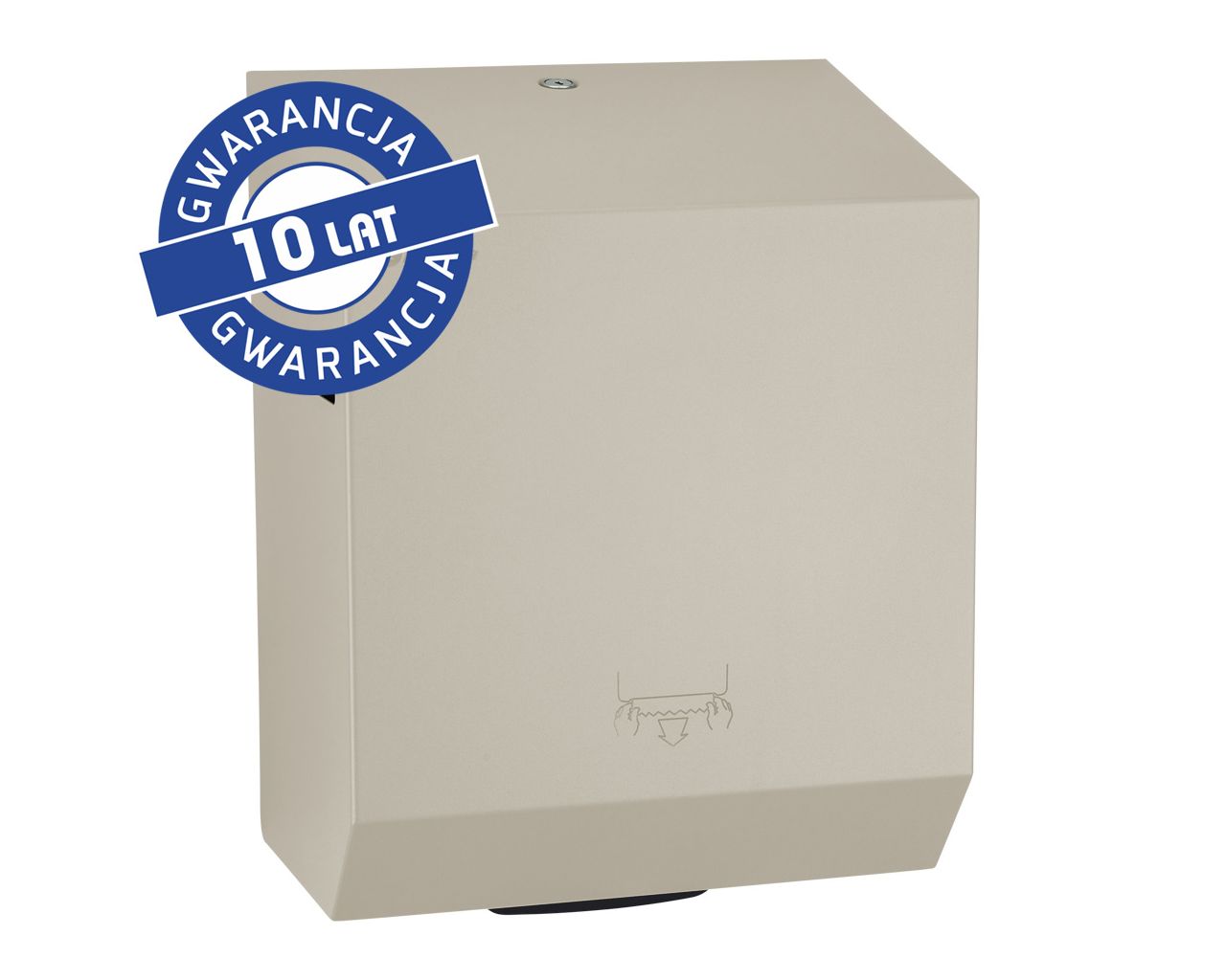 Mechaniczny podajnik ręczników papierowych zapewnia higieniczne użytkowanie, dotykany jest tylko pobierany ręcznik. Pobranie ręcznika uruchamia mechanizm odcinający listek o długości 25,5 cm. Urządzenie charakteryzuje się cichą i delikatną pracą mechanizmu odcinającego. W sytuacji awaryjnej ręcznik można wysunąć przez naciśnięcie dźwigni PUSH, znajdującej się w dolnej części podajnika. Uchwyt rolki wyposażony w system ułatwiający zakładanie ręcznika. Podajnik posiada łatwy dostęp do mechanizmu tnącego umożliwiający bezproblemowe czyszczenie oraz konserwację urządzenia. Wykonany ze stali nierdzewnej. Obudowa pokryta specjalną strukturalną jedwabiście szarą powłoką. Podajnik ręczników zabezpieczony jest trwałym stalowym zamkiem bębenkowym. Zamek zlicowany z powierzchnią urządzenia. Łączenia boków podajnika ręczników są spawane i szlifowane. Urządzenie posiada niewidoczne zawiasy. Zamykany na kluczyk.