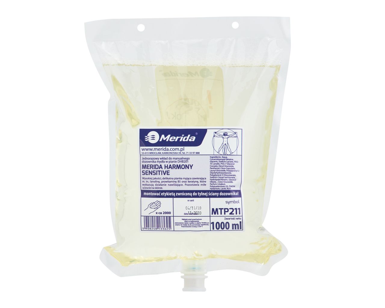 Mydło w pianie MERIDA HARMONY SENSITIVEjednorazowy wkład 1000 mlo zdecydowanym aromacie