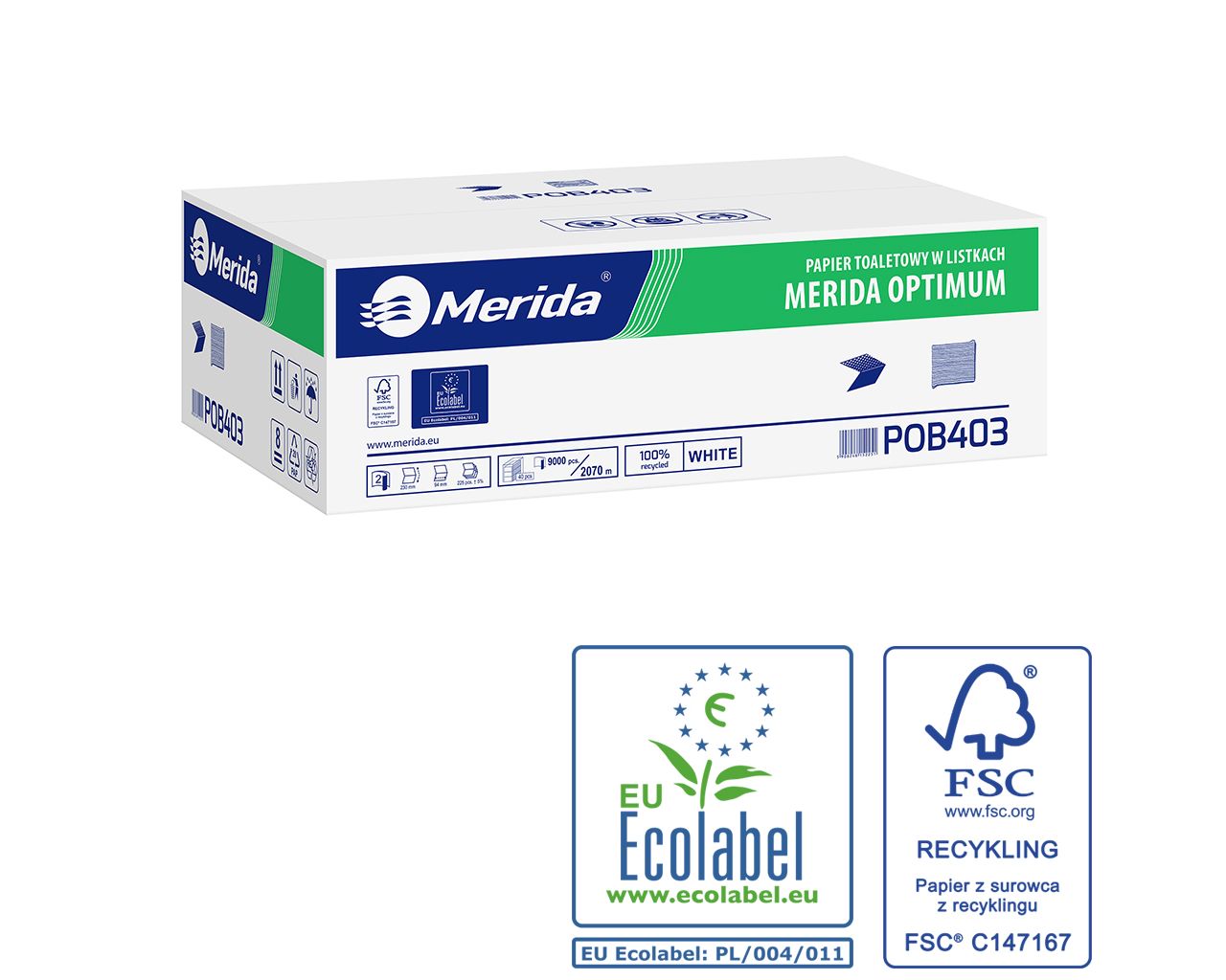 Papier toaletowy w listkachMERIDA OPTIMUM ECOLABEL, dwuwarstwowy, białykarton 9000 szt.