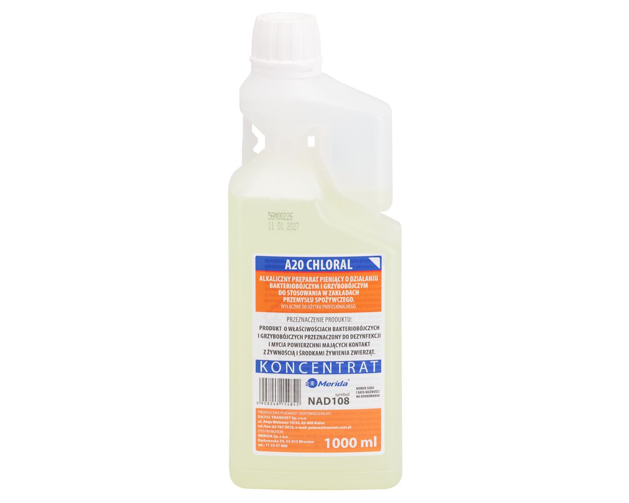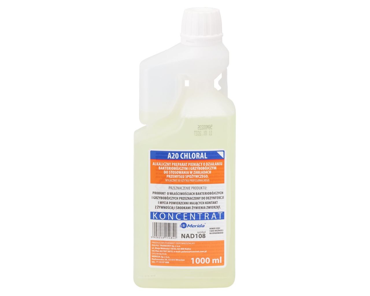 Płyn do mycia i dezynfekcjiA20 CHLORAL, koncentratbutelka 1000 ml z miarką dozującą