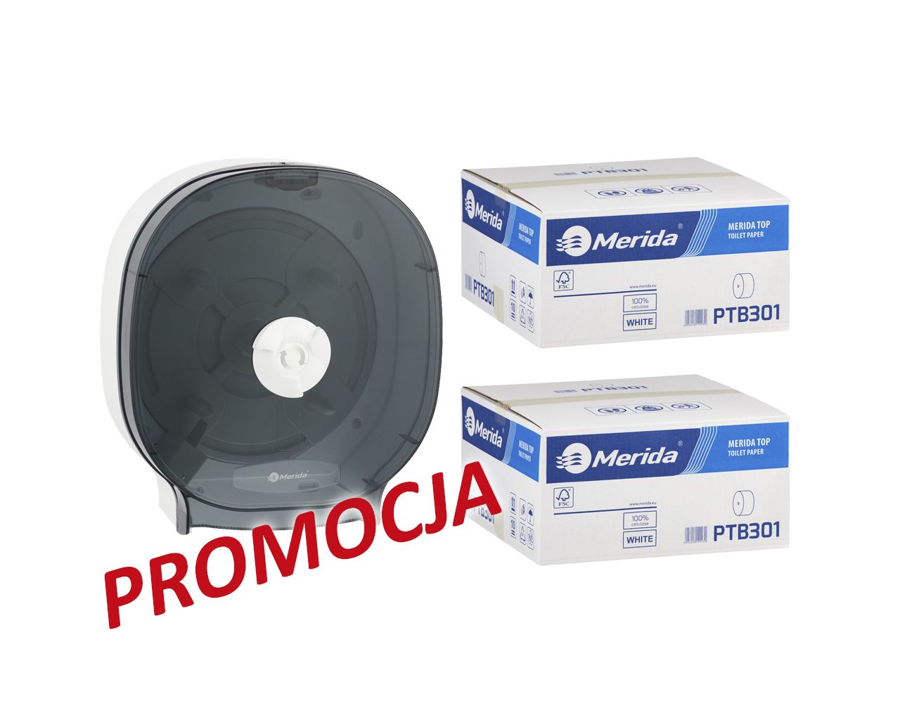 Pojemnik na cztery rolki papieru toaletowego bez gilzy MERIDA ONE biały za 75 zł netto przy zakupie 2 kartonów papiery toaletowego MERIDA TOP PTB301 (36 x 85 m = 3060 m12 240 listków)