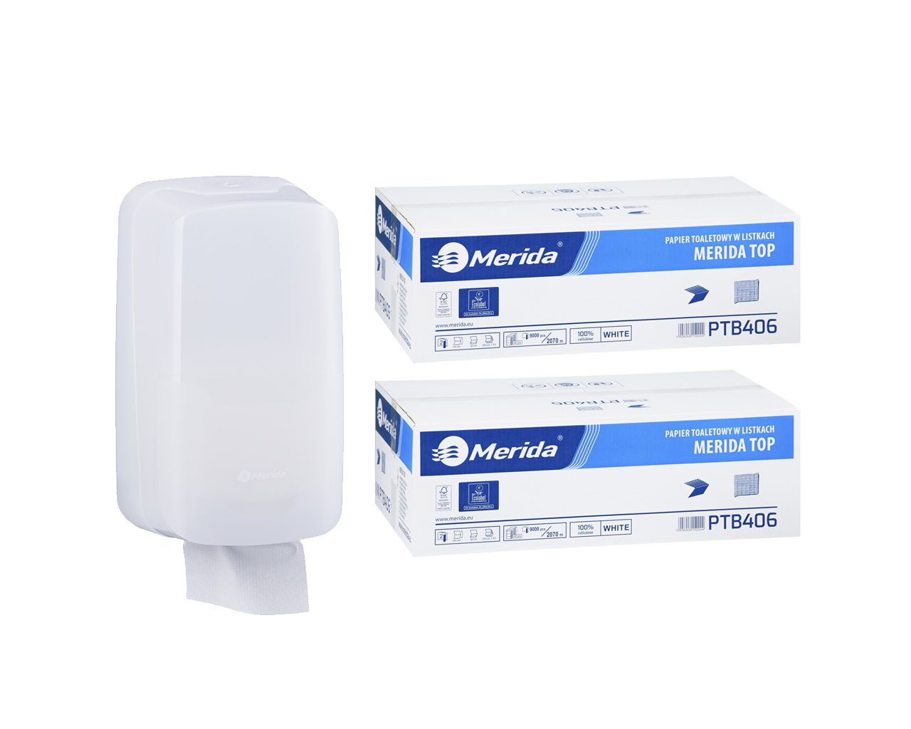 Pojemnik na papier toaletowy w listkach MERIDA HARMONY za 1 zł netto przy zakupie 2 kartonów papierów toaletowych MERIDA TOP PTB406 (18 000 listków)