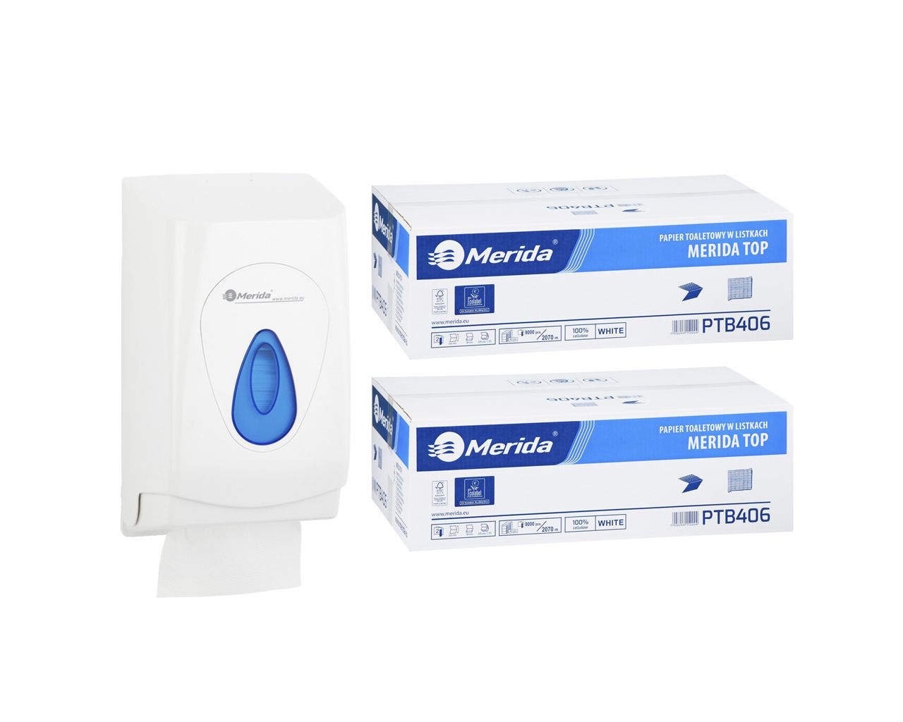 Pojemnik na papier toaletowy w listkach MERIDA TOP za 1 zł netto przy zakupie 2 kartonów papierów toaletowych MERIDA TOP PTB406 (18 000 listków)
