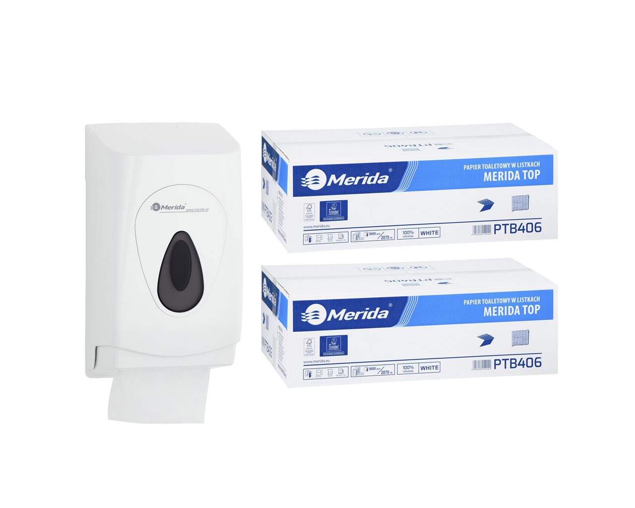 Pojemnik na papier toaletowy w listkach MERIDA TOP za 1 zł netto przy zakupie 2 kartonów papierów toaletowych MERIDA TOP PTB406 (18 000 listków)
