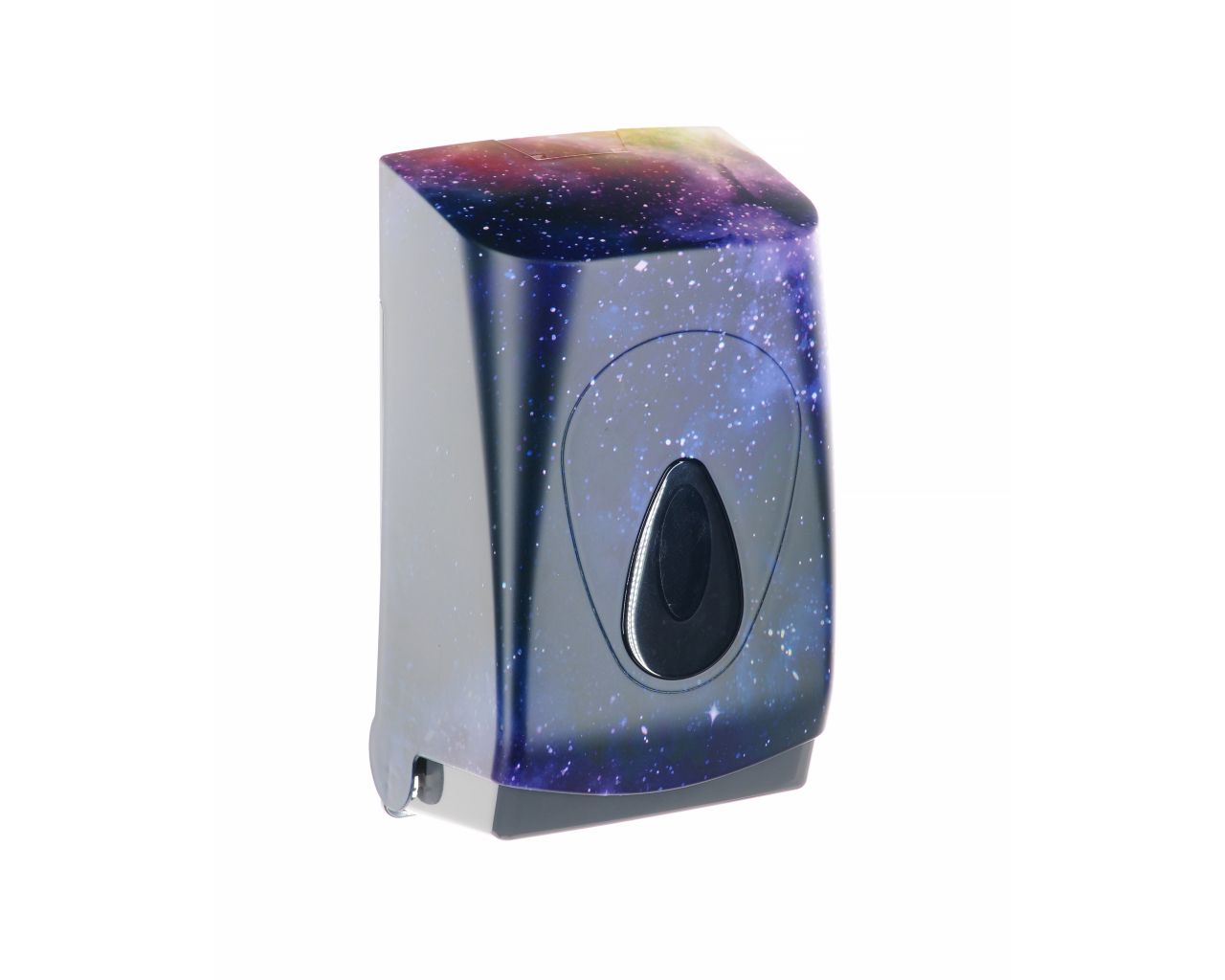 Pojemnik wykonany z wysokiej jakości tworzywa ABS o pojemność do 400 szt. listków papieru. Dostosowany do użytkowania z papierem toaletowym w listkach. Zaopatrzony w ozdobne, ciemnoszare okienko umożliwiające kontrolę ilości papieru w pojemniku. Odporny na działanie UV. Pojemnik zamykany na kluczyk.