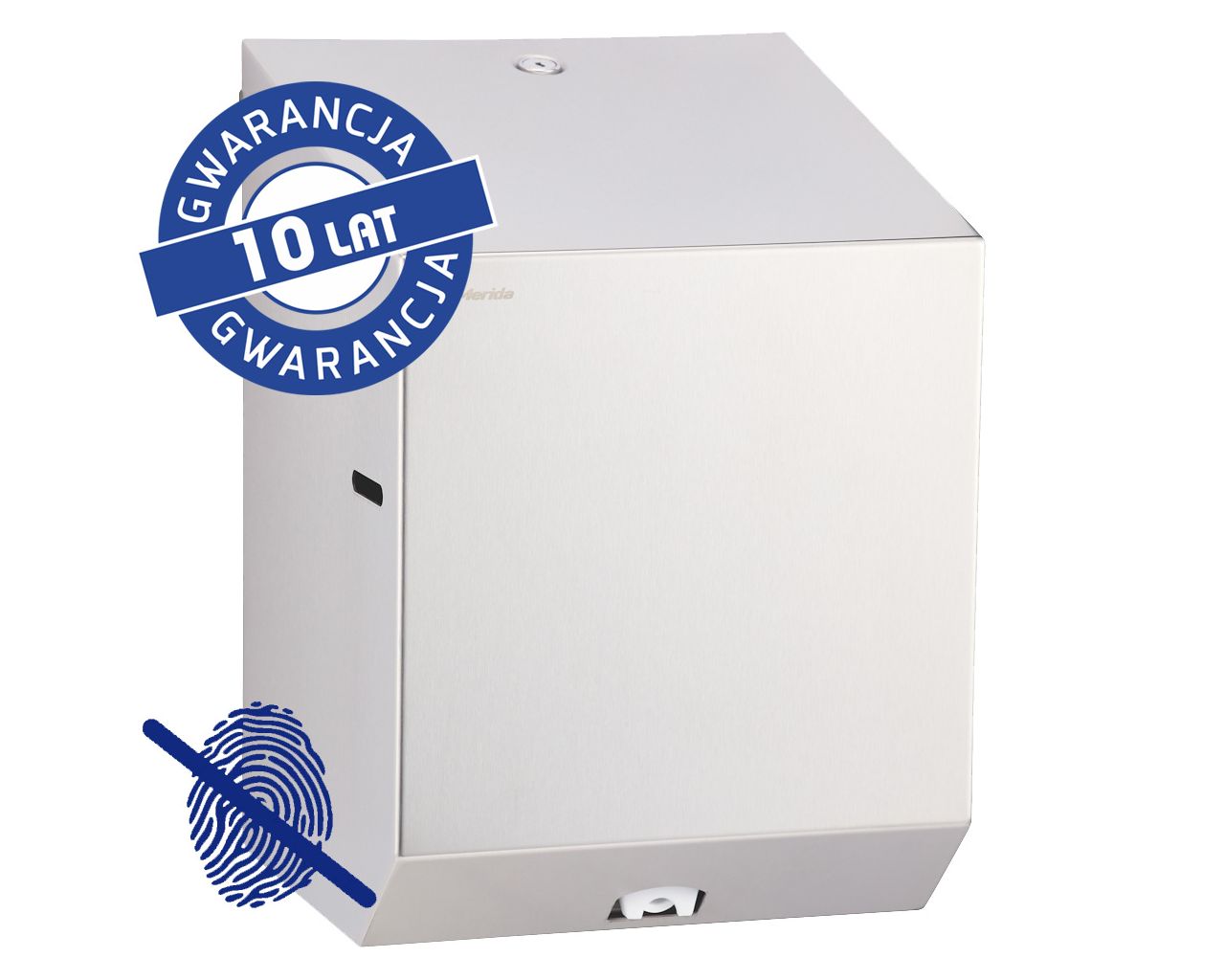 Pojemnik na papier toaletowy pokryty jest specjalną powłoką zabezpieczającą przed pozostawianiem odcisków palców Anti-FingerPrint – AFP.