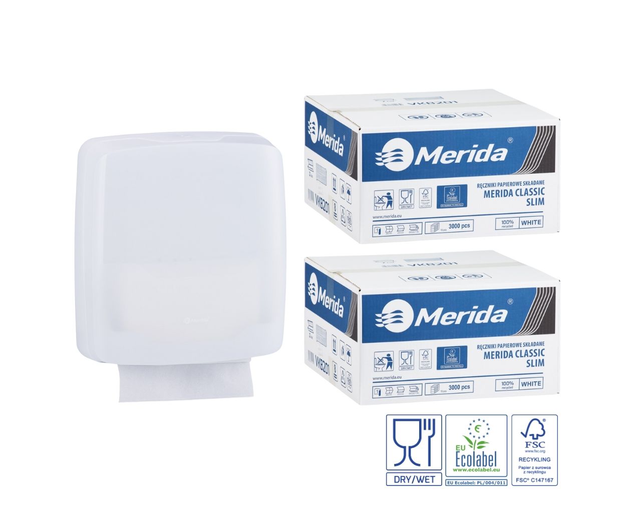 Zestaw promocyjny: Merida Harmony SLIM biały + 2 kartony ręczników Classic SLIM Ecolabel