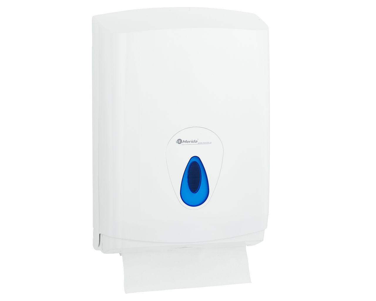Mechaniczny podajnik ręczników papierowych w rolach MERIDA TOP AUTOMATIC MAXItworzywo ABS, biały połyskokienko niebieskieSymbol: CTN302295,00 zł