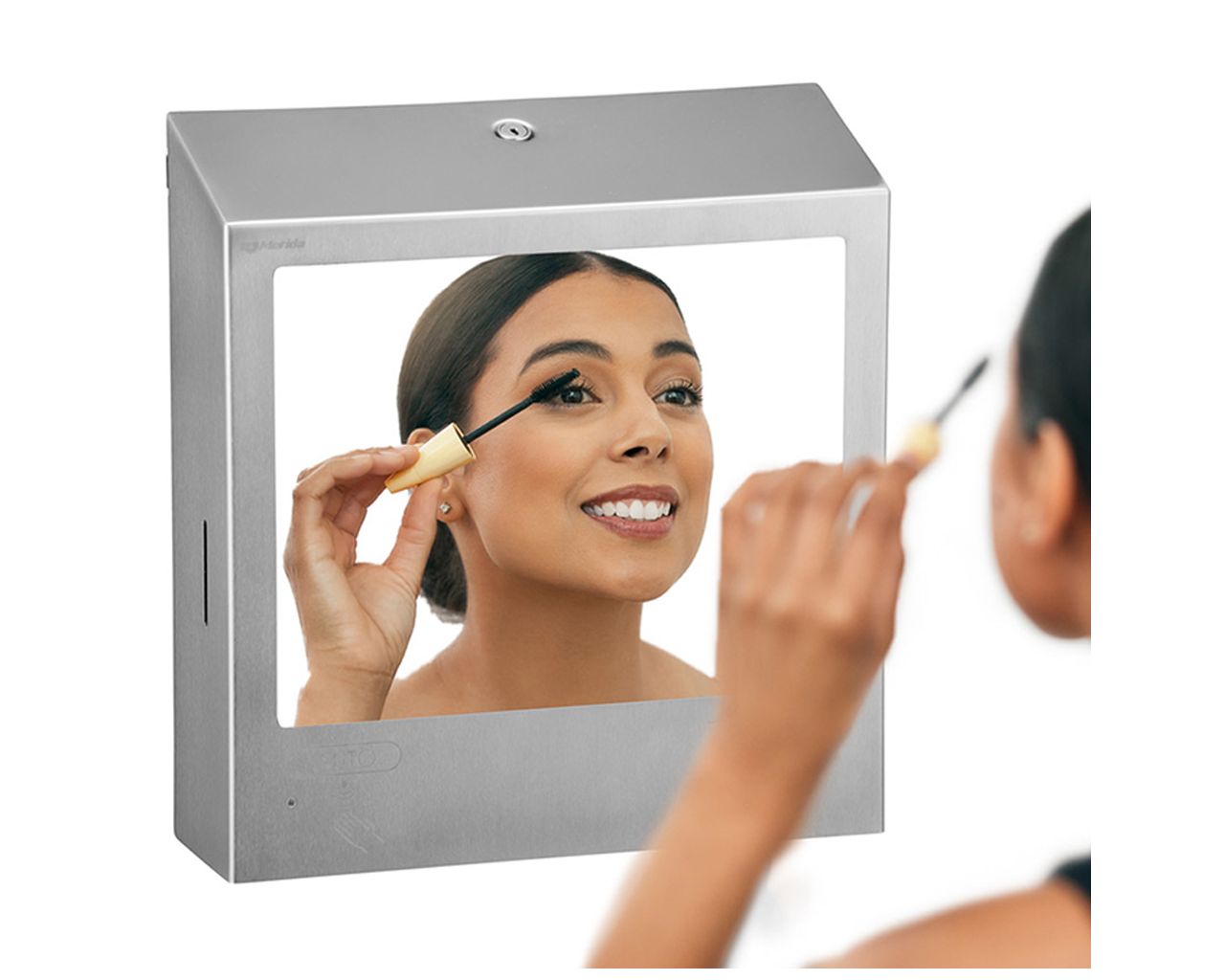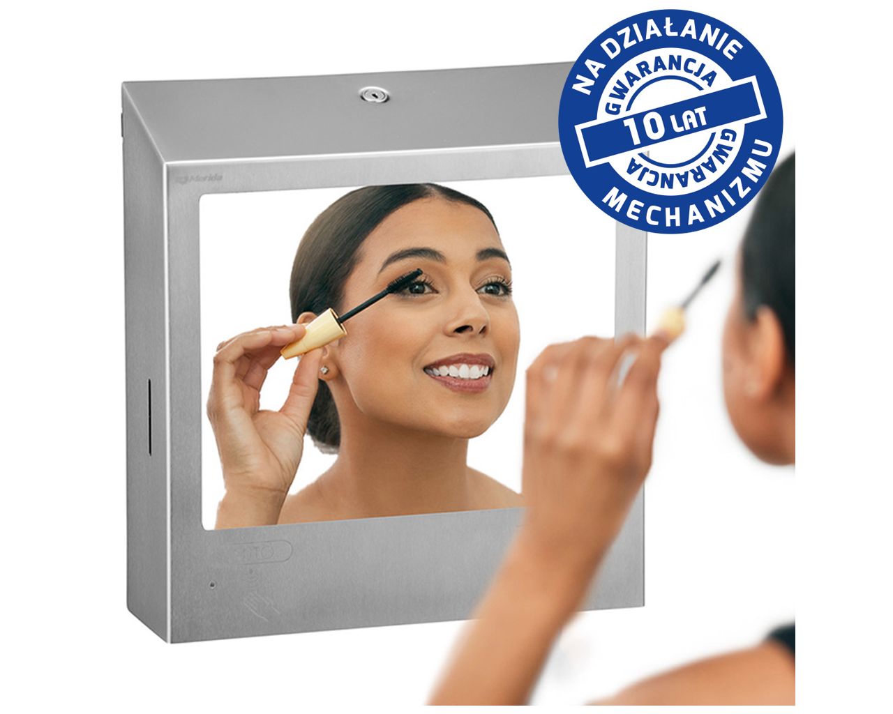 Pojemnik na ręczniki składane z bezdotykowym automatycznym dozownikiem mydła w pianie i z lustrem ze stali SuperMirror „3 w 1″ MERIDA STELLA SLIM COMBOstal matowa