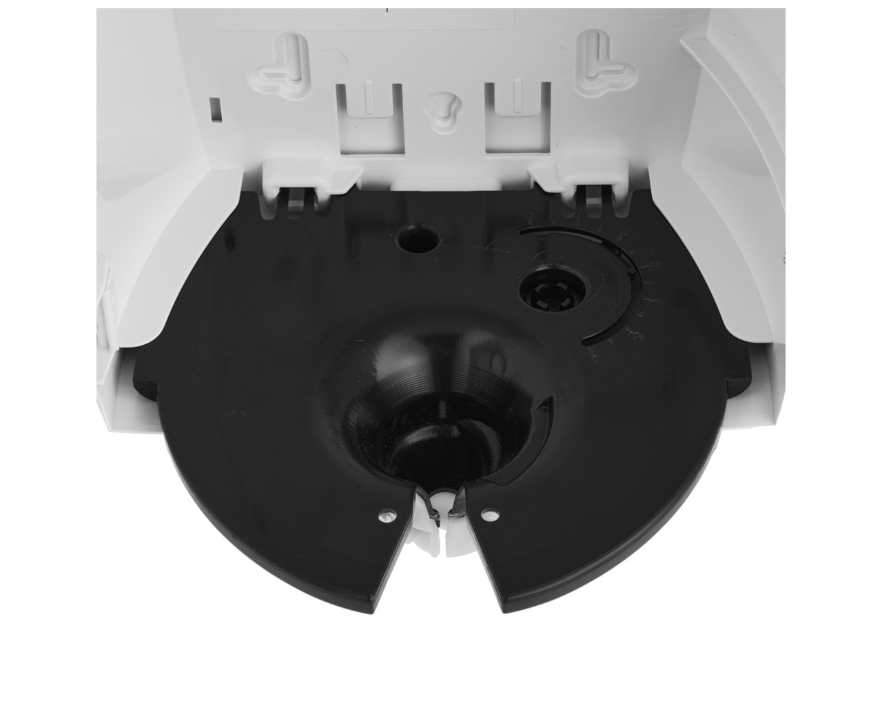 Pojemnik posiada specjalną wkładkę dozującą, która jest dzielona, dzięki czemu nie ma konieczności przekładania ręcznika przez otwór dyszy, ręcznik wystarczy wcisnąć w szczelinę w dyszy i zamknąć przednią pokrywę dozownika; przy otwieraniu czy zamykaniu pojemnika dysza automatycznie otwiera się/zamyka.
