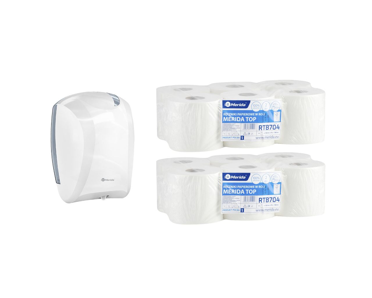 Pojemnik na ręczniki w roli CENTER PULL biały za 75 zł netto przy zakupie 2 opakowań ręczników w roli MERIDA TOP MINI RTB704 (12 x 130 m = 1560 m)