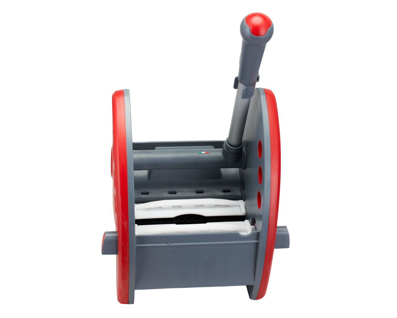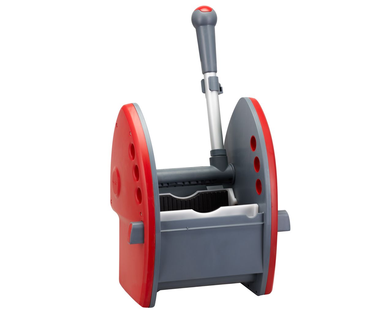 – gumowe listwy na szczękach prasy do wyciskania mopów zwiększają tarcie, dzięki czemu mop nie ślizga się podczas wyciskania, co pozwala dokładniej i skuteczniej usunąć wodę