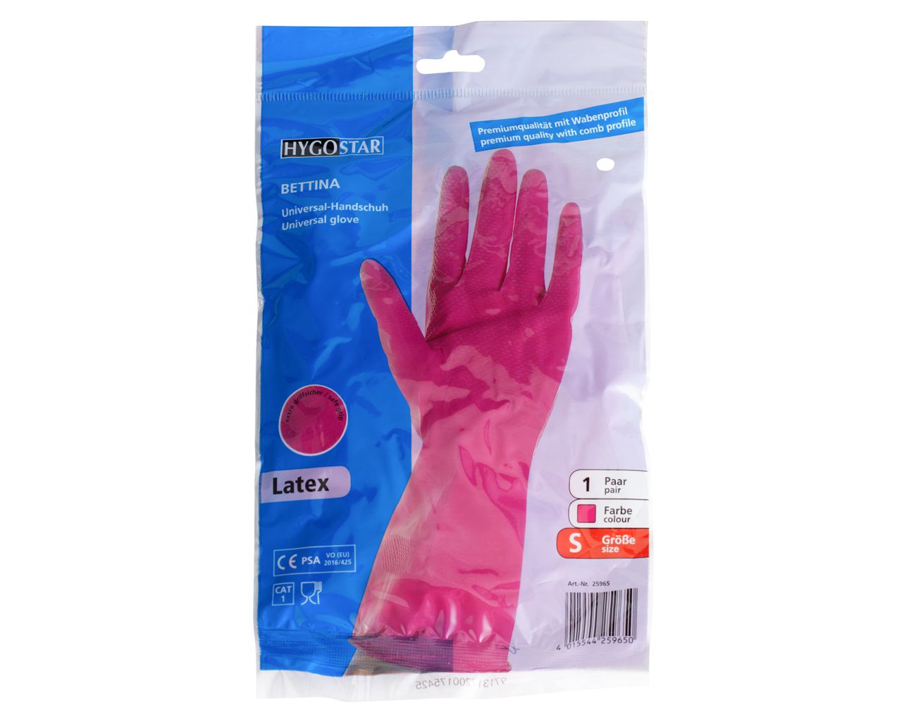 Bardzo wygodne, o podwyższonej trwałości i wytrzymałości, do profesjonalnych zastosowań. Wykonane z lateksu z wewnętrzną wyściółką z bawełny – malinowe. Zastosowany wzór na palcach i części chwytnej (extra grip) zwiększa przyczepność podczas pracy. Rękawice chronią przed otarciami naskórka oraz wpływem środków chemicznych. Do wielokrotnego stosowania – solidne i wytrzymałe. Pakowane po jednej parze.