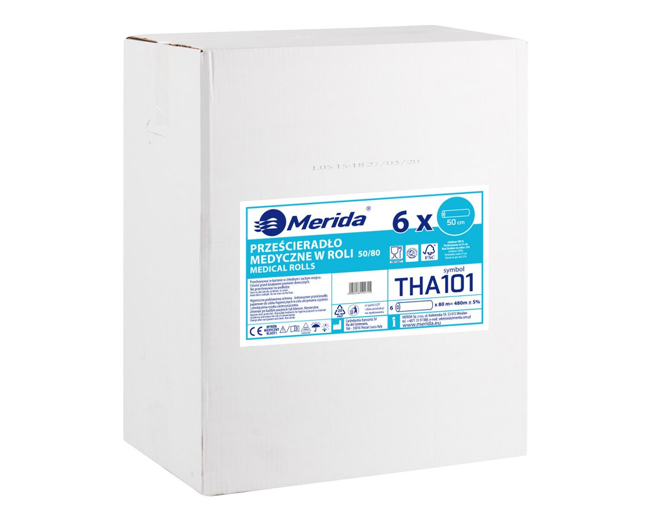 Prześcieradło medyczne w rolicelulozowe, dwuwarstwowe, szer. 50 cm, dł. 80 m, SUPER BIAŁEkarton 6 szt.