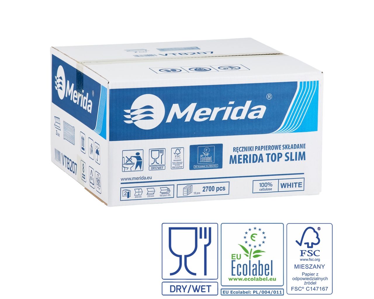 Ręczniki papierowe składane w ZMERIDA TOP SLIM ECOLABEL, dwuwarstwowe, białekarton 2700 szt.