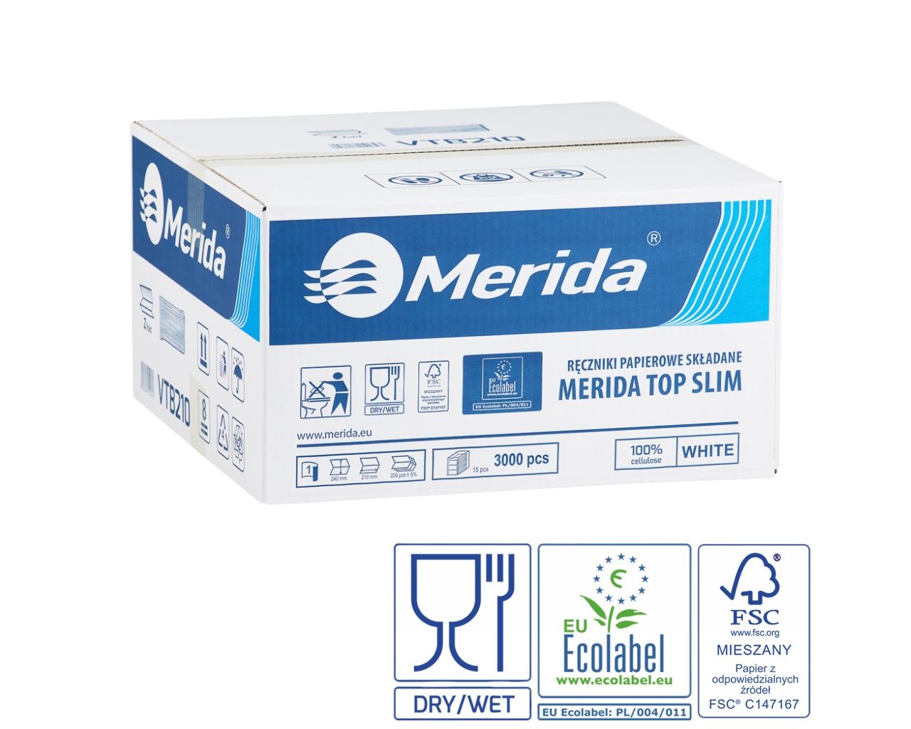 Ręczniki papierowe składane w ZMERIDA TOP SLIM ECOLABEL, jednowarstwowe, białekarton 3000 szt.