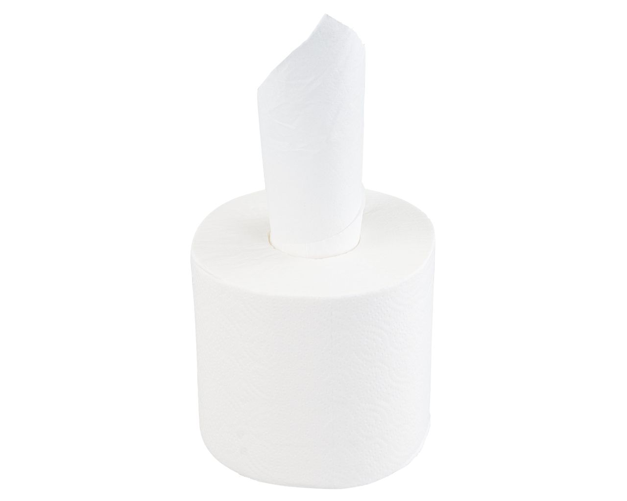 Ręczniki papierowe w roliMERIDA TOP CENTER PULL MINI ECOLABEL, dwuwarstwowe, białe, średnica 17 cm, długość 130 mzgrzewka 6 rolek