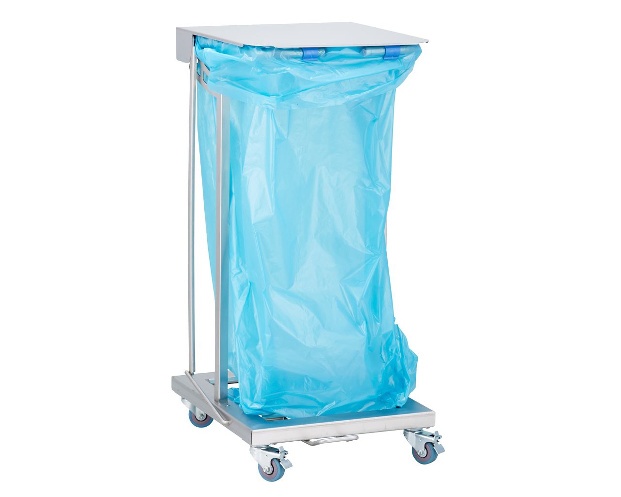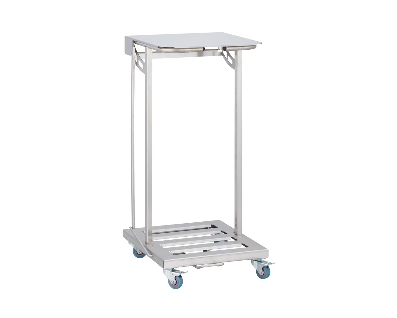 Stelaż na workiz wolno opadającą pokrywą i przyciskiem pedałowym, na kółkachstal matowa