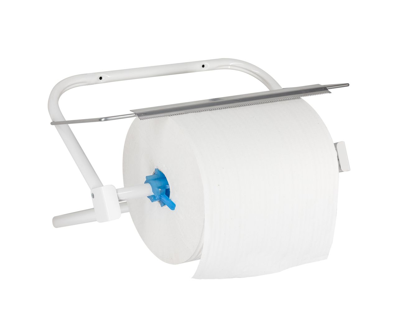 Wieszak na przemysłowe czyściwa w rolachmetalowybiały