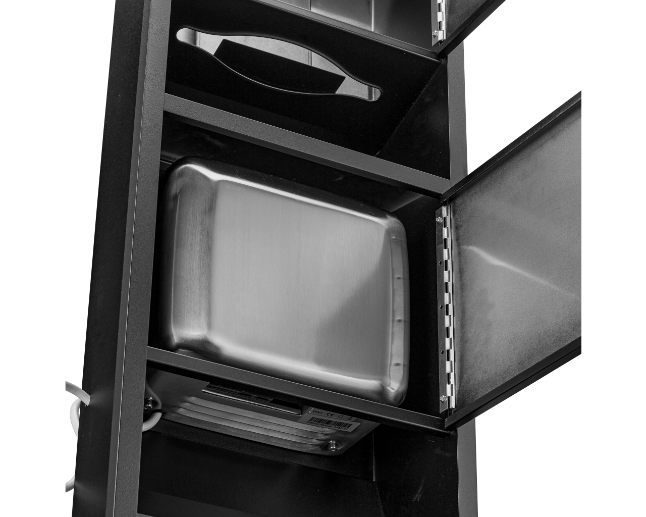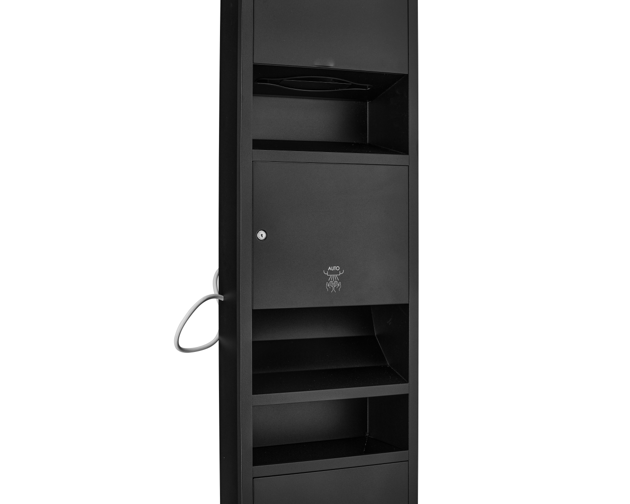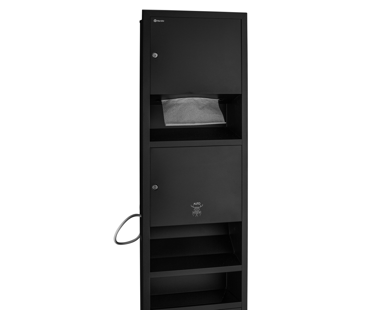 Wnękowy pojemnik na ręczniki pojedyncze z suszarką do rąk i koszem MERIDA STELLA BLACK LINE