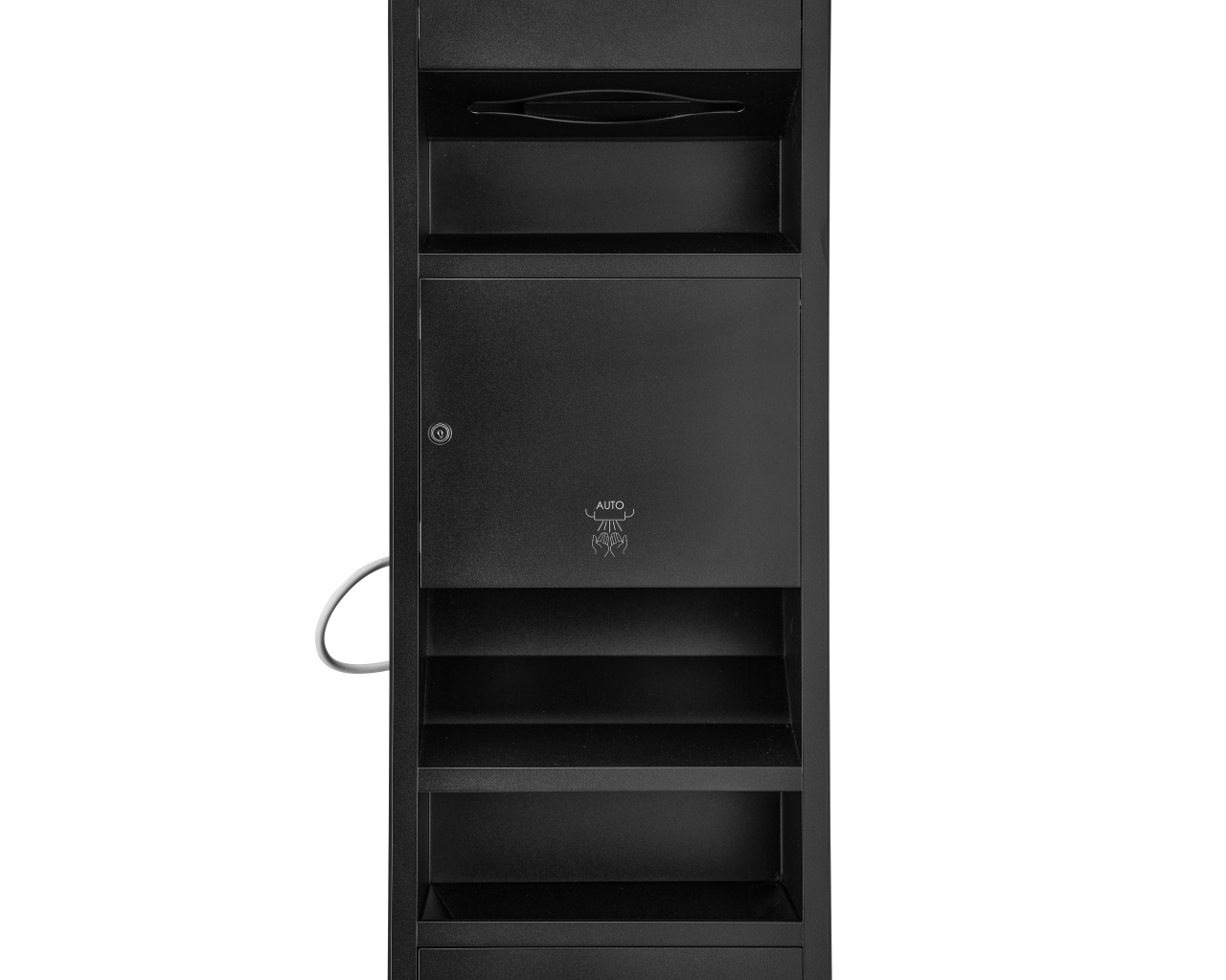– w środkowej części urządzenia znajduje się schowana elektryczna suszarka do rąk o mocy 2500 W, uruchamiana czujnikiem zbliżeniowym