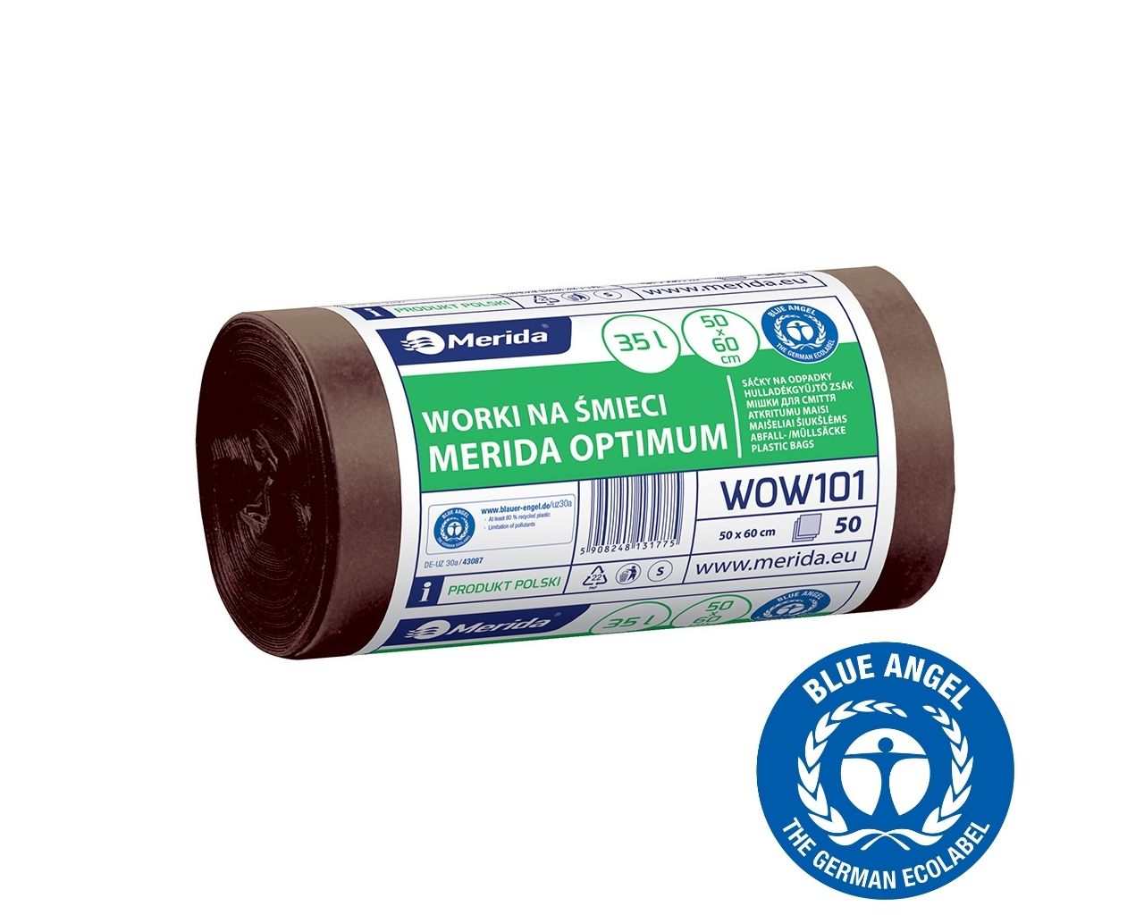Worki na bioodpady 35 lMERIDA OPTIMUM BLUE ANGEL, brązowe, 50×60 cmrolka 50 szt.