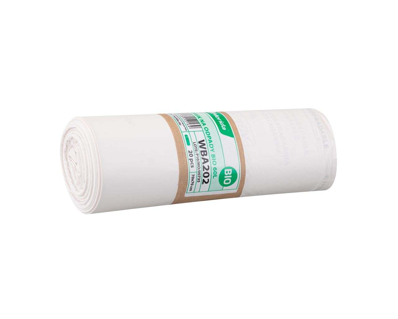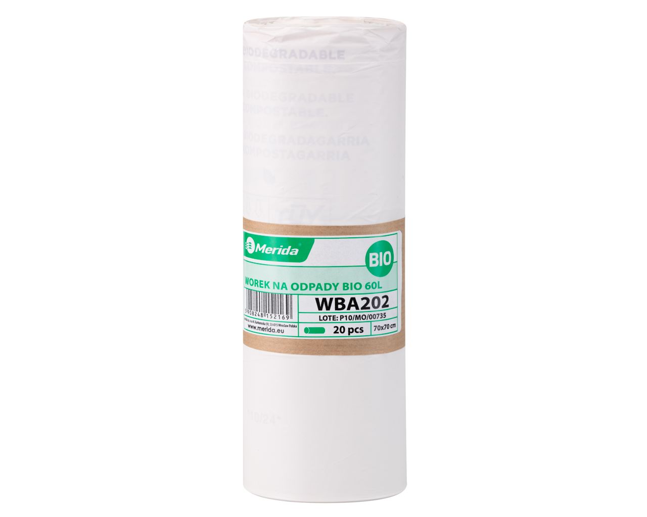 Worki biodegradowalne na śmieci 60 lMERIDA BIO, białe, 70×70 cmrolka 20 szt.
