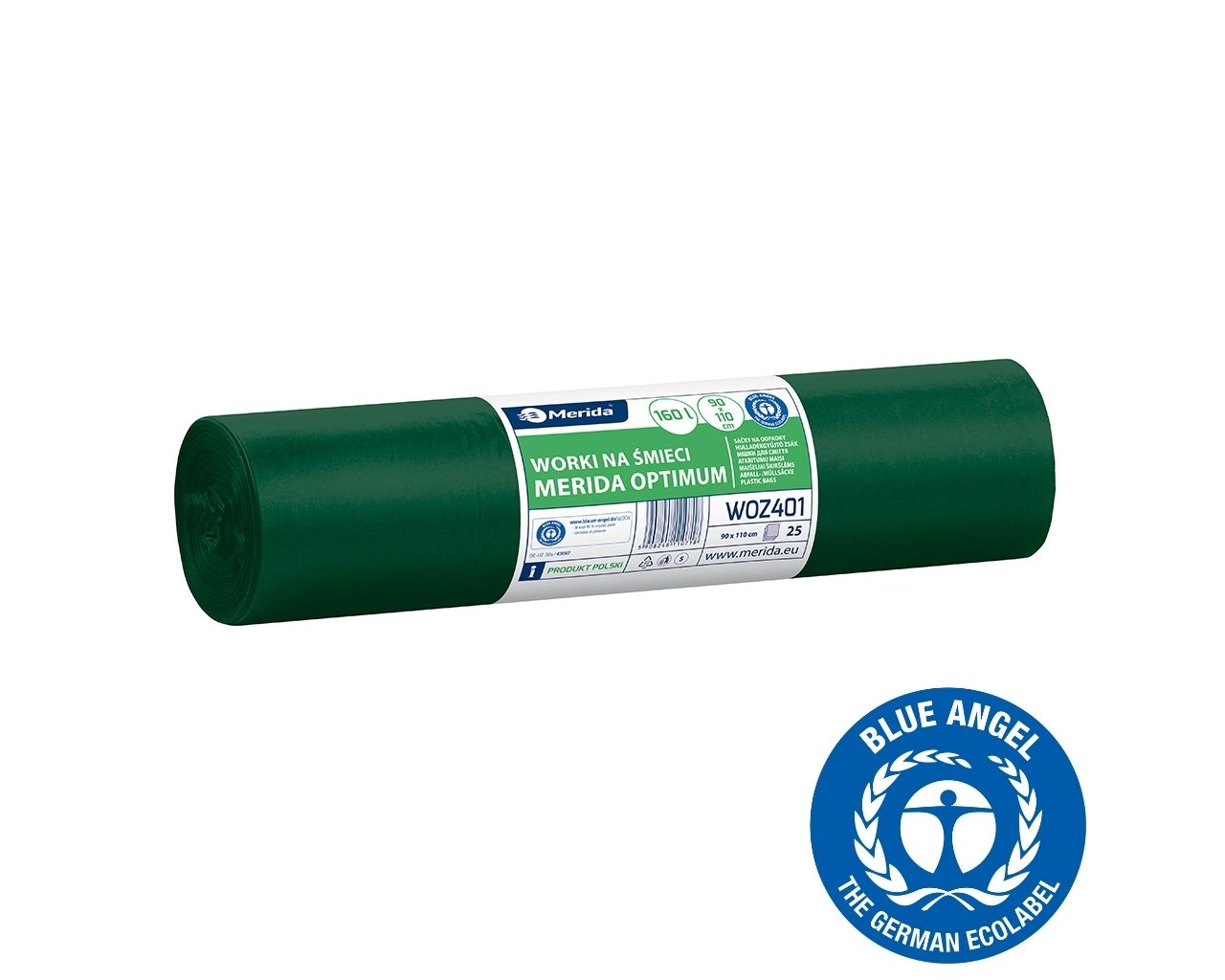 Worki na śmieci 160 lMERIDA OPTIMUM BLUE ANGEL, zielone, 90×110 cmrolka 25 szt.