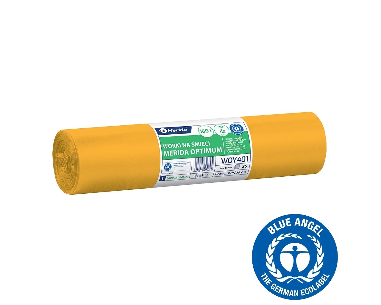 Worki na śmieci 160 lMERIDA OPTIMUM BLUE ANGEL, żółte, 90×110 cmrolka 25 szt.