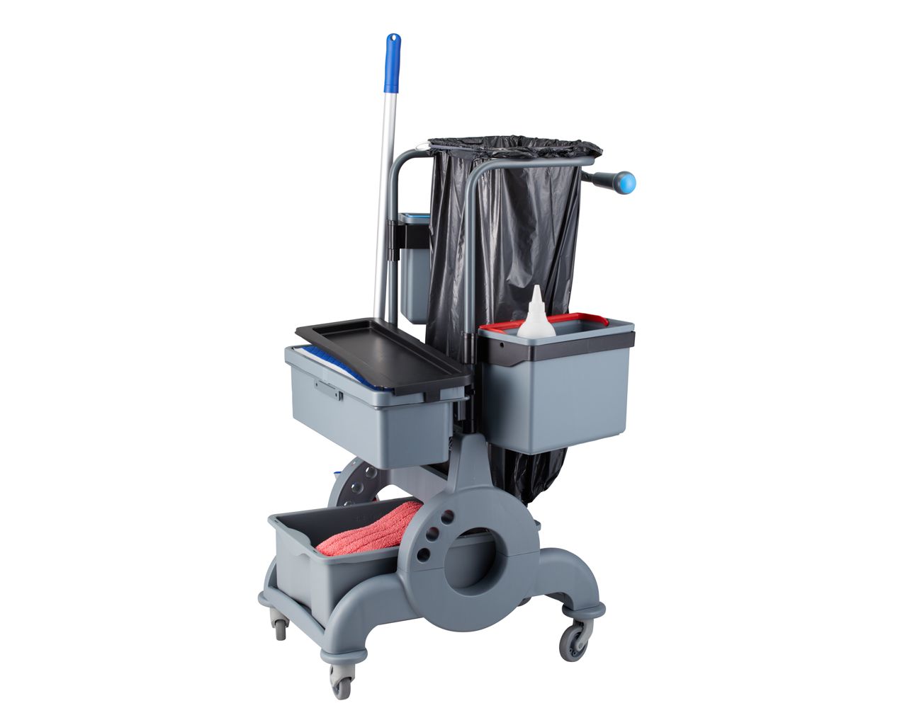 – wózek kuwetowy do sprzątania wykonany jest w całości z wytrzymałego tworzywa sztucznego pochodzącego w 100% z recyklingu