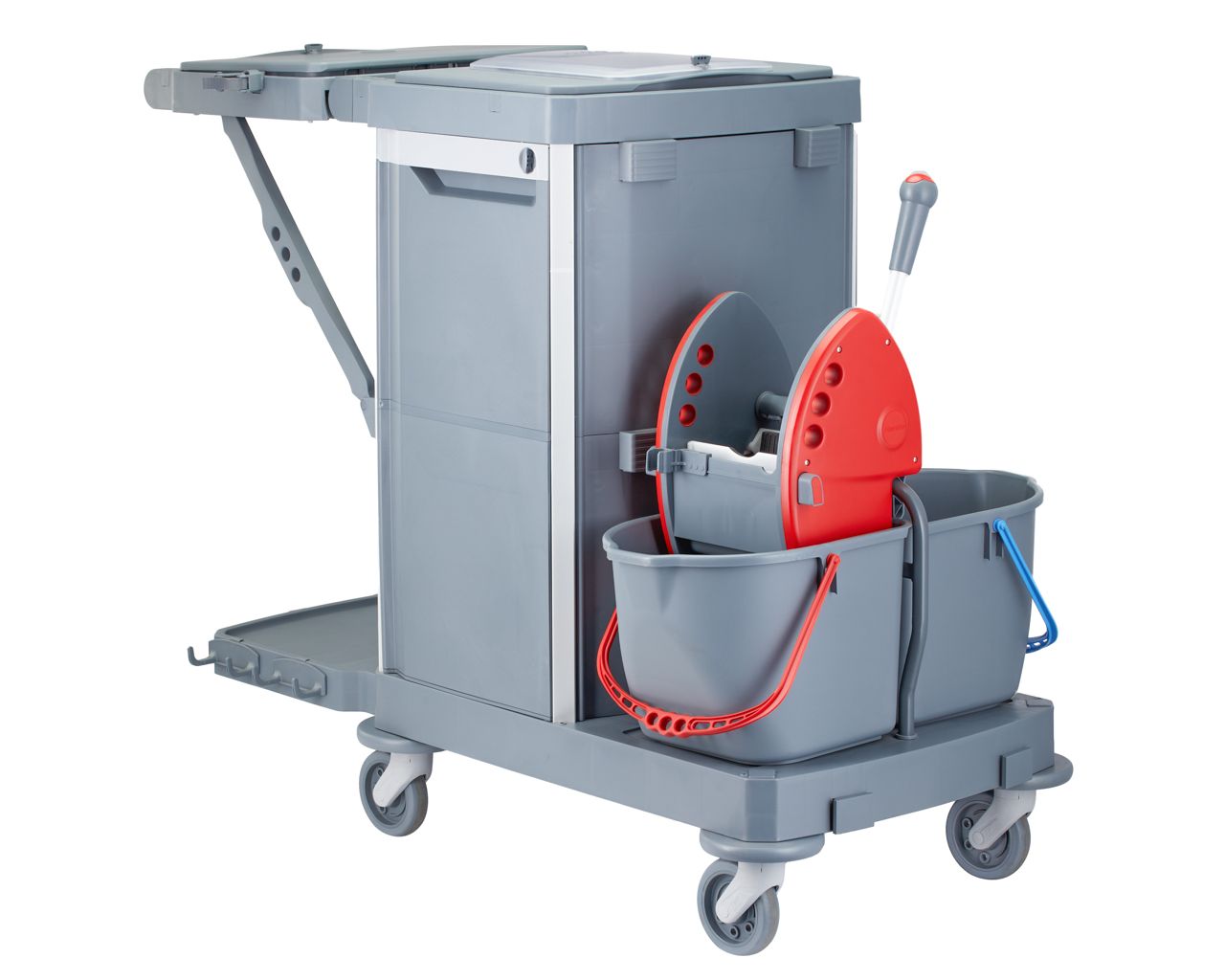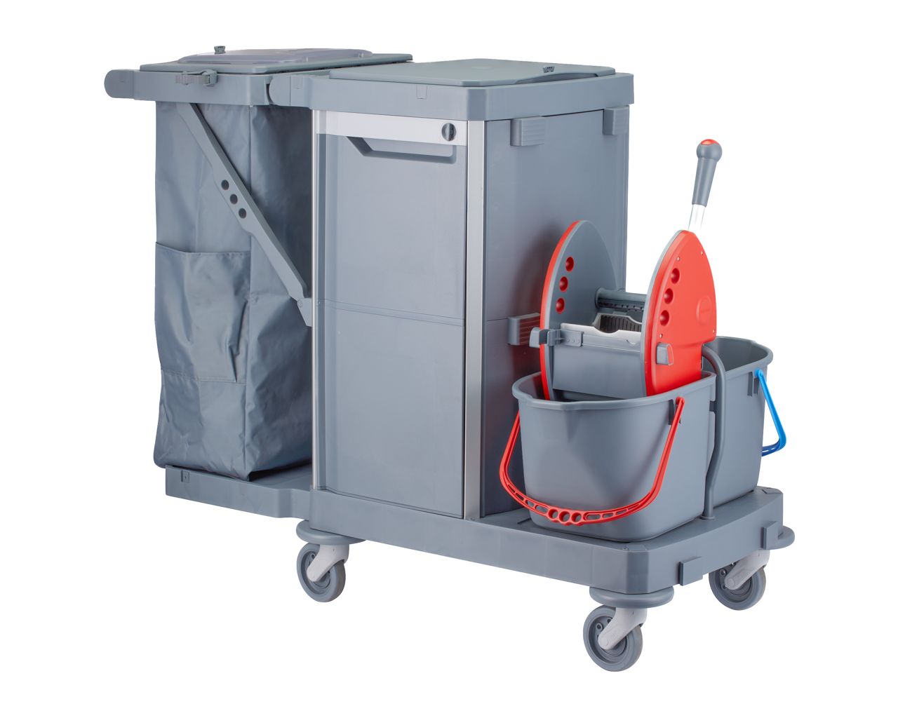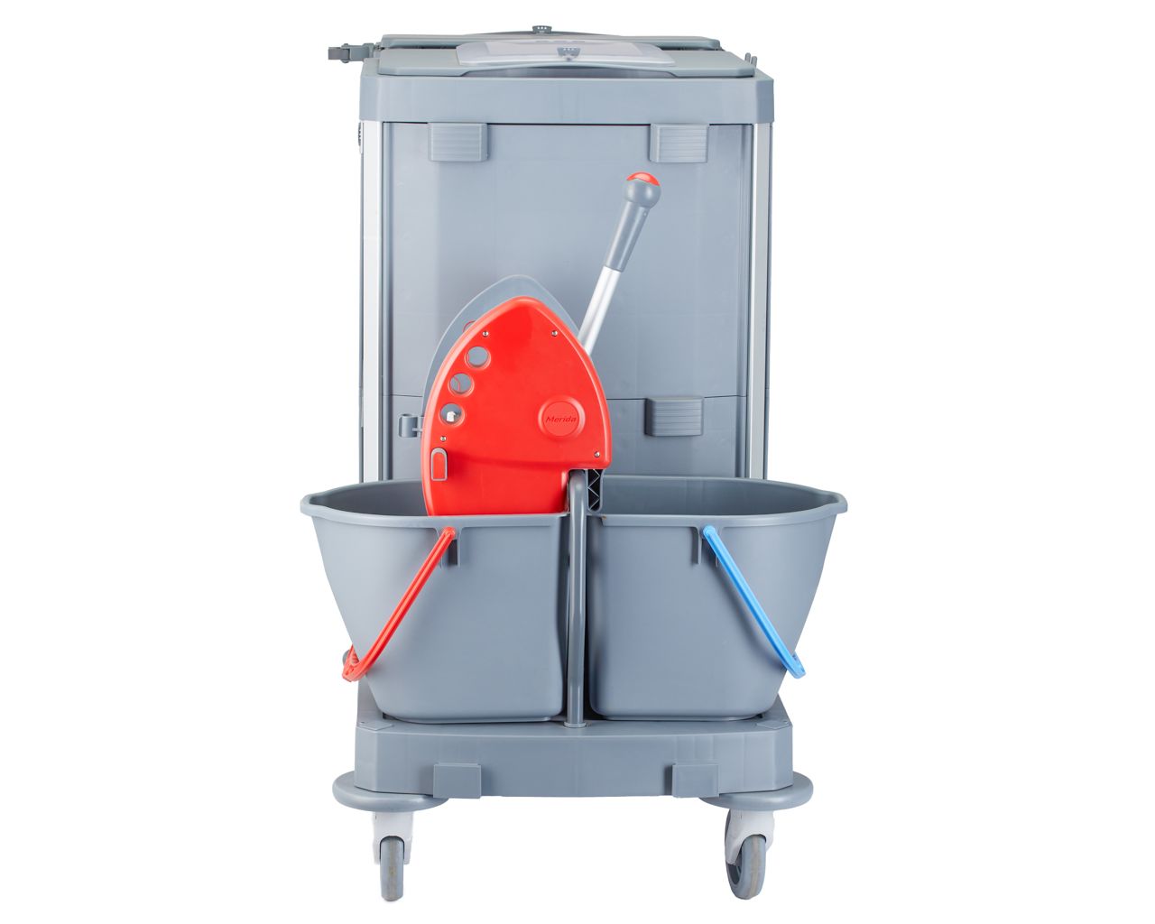 Wózek serwisowy do sprzątaniaMERIDA OPERA, 2 x wiadro 15 l, kuweta 20 l, kuweta 40 l, 3 x wiaderko 7 luchwyt na worek 120 l z pokrywą