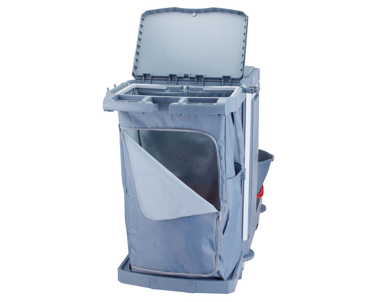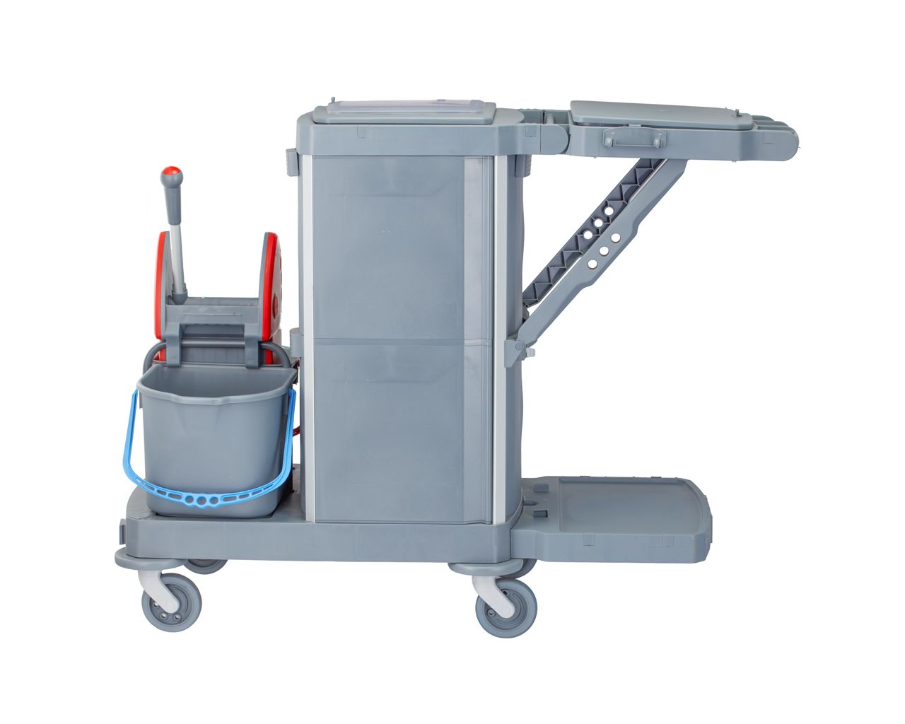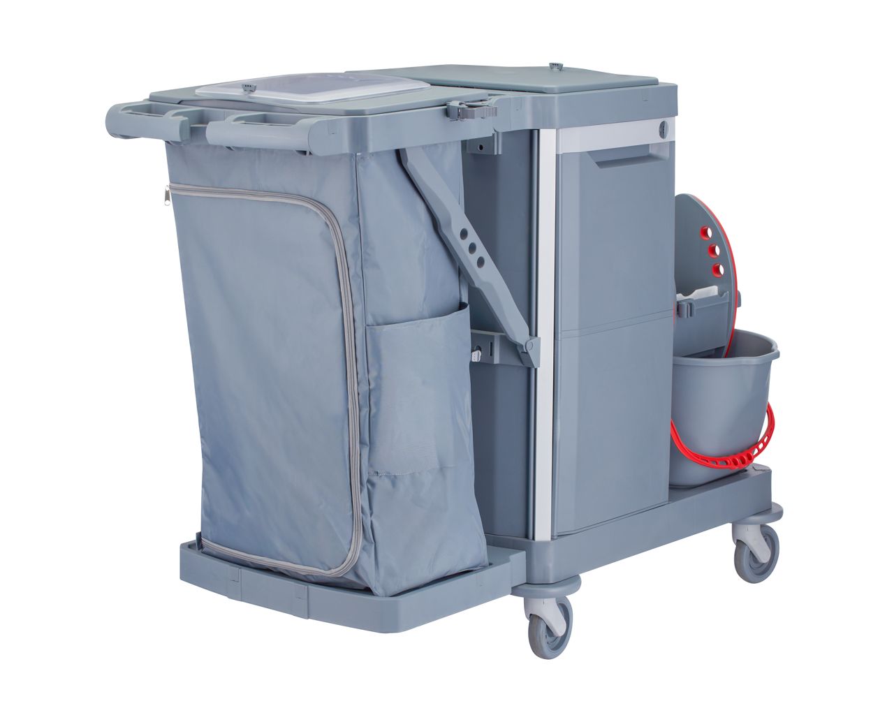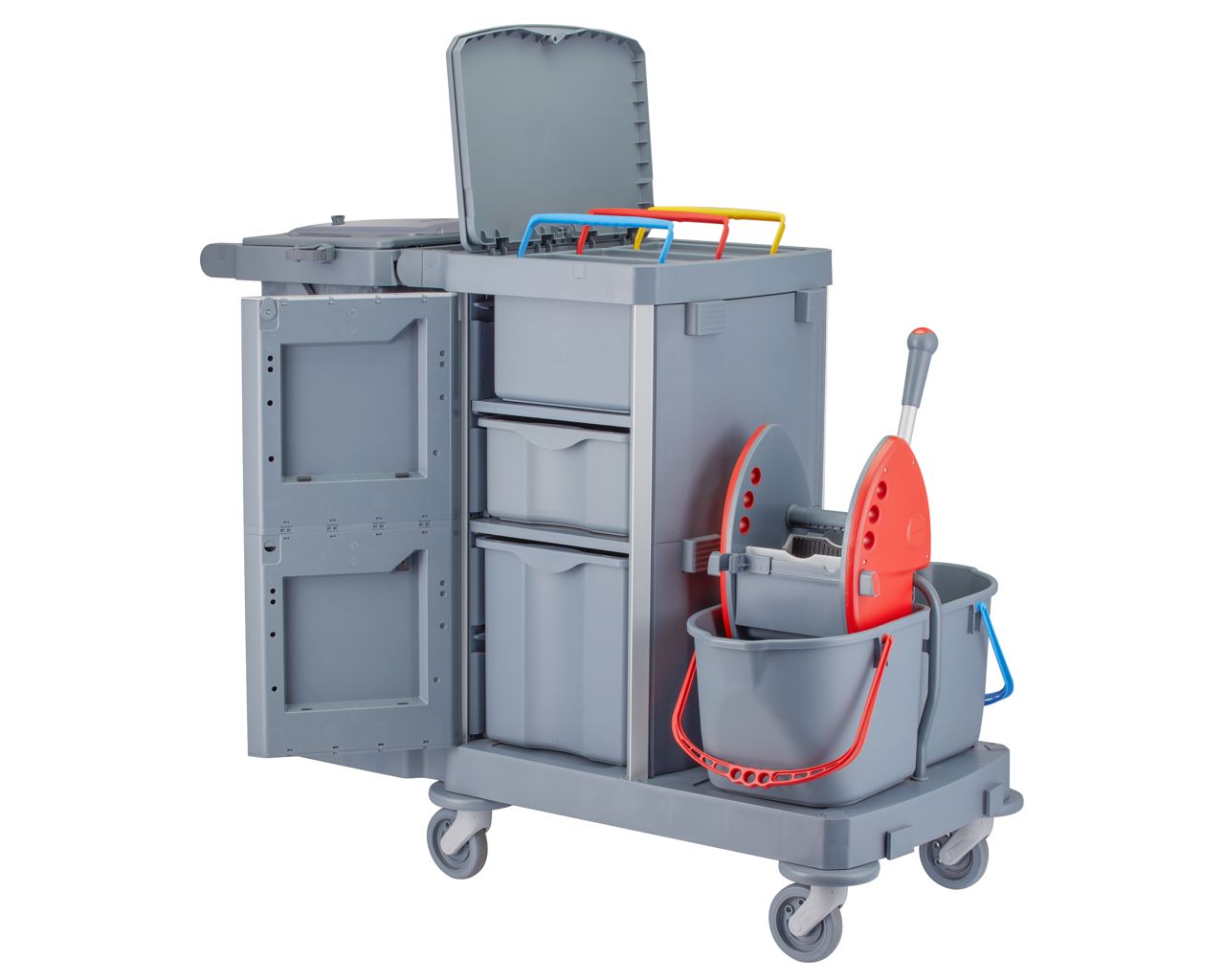 Wózek serwisowy do sprzątaniaMERIDA OPERA, 2 x wiadro 15 l, kuweta 20 l, kuweta 40 l, 3 x wiaderko 7 luchwyt na worek 120 l z pokrywą