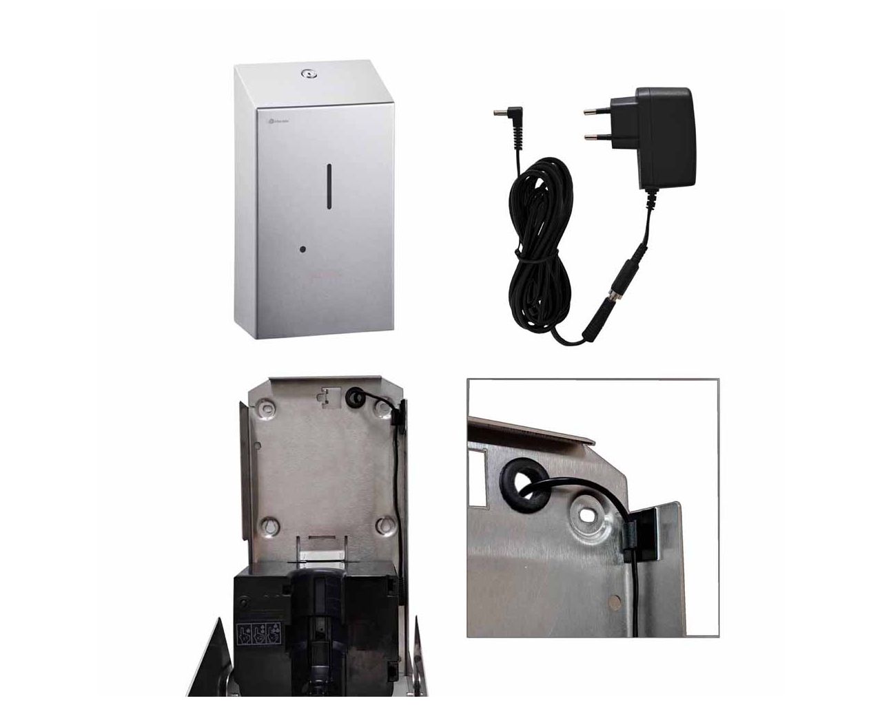 – umożliwia zasilanie bezdotykowych dozowników MERIDA STELLA z gniazdka, zamiast zasilania z baterii